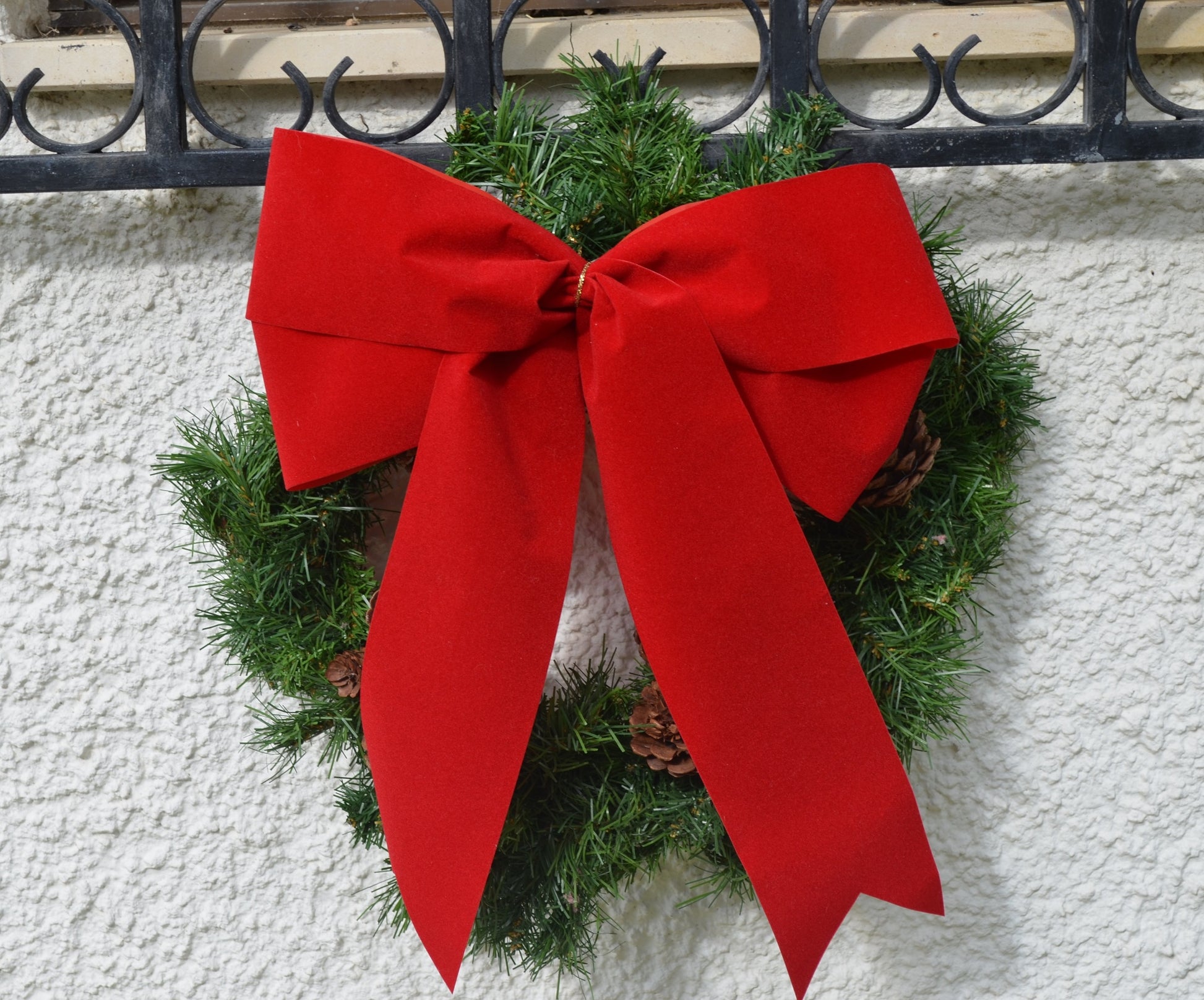 The bow is made by hand from 10 cm wide velour / artificial velvet with a delicate plastic coating on the back. Tied with 4 loops, perfect hold and beautiful.