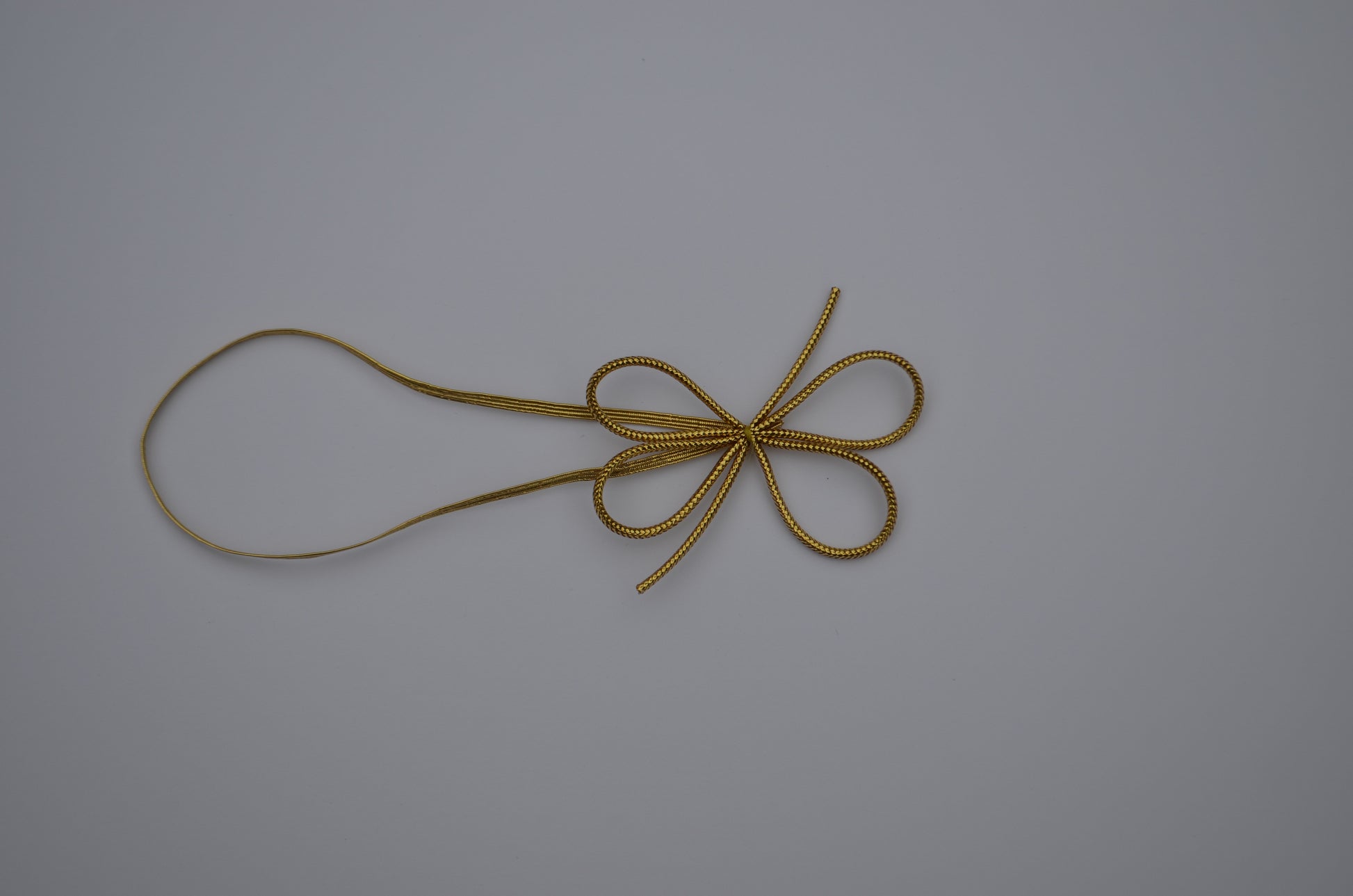 Elastic ribbon with a 6cm big bow in Gold with a 26cm diameter elastic.