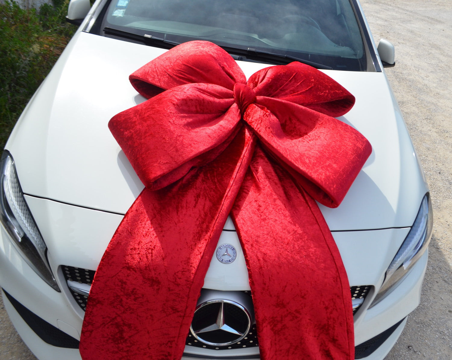 Spectacular and luxurious giant bow for vehicle gifts and car dealership presentations.