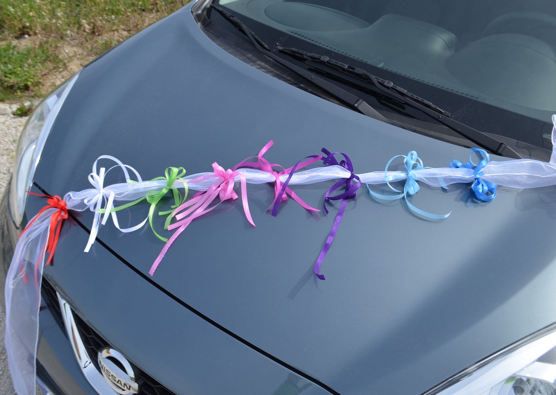 The set includes: 1 big organza bow, 6 satin decoration bows and 10 satin bows for the car antenna.