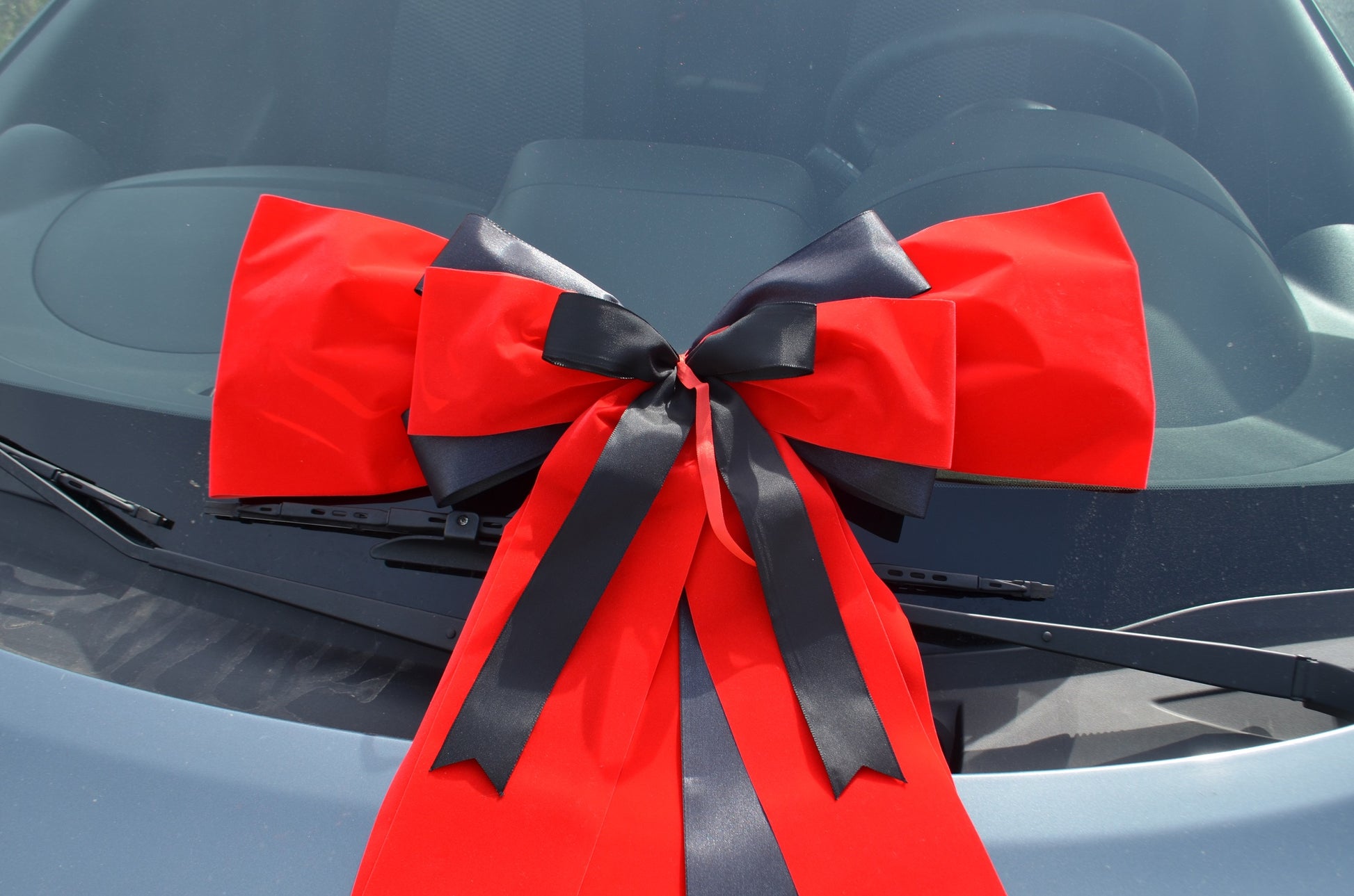 Classic red velvet bow ornamented with black satin ribbon for Cars or Big Gifts